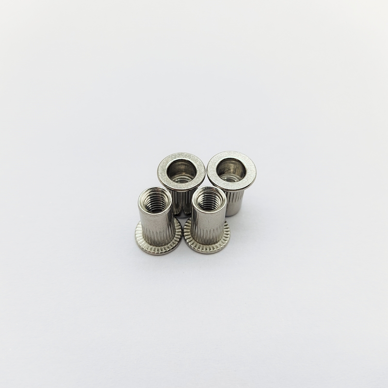 Düz başlı ve dikey tırtıllı, dönmeyi engelleyen perçin somunları. 304 paslanmaz çelik, yarı pürüzsüz gövde, kısmi iç dişler. M4-M8 boyutları. Pasive edilmiş. Elektronik ve muhafazalar için idealdir.